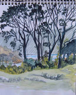 I've begun to sketch using pen before colouring with watercolour. The result is a little different from my usual style.